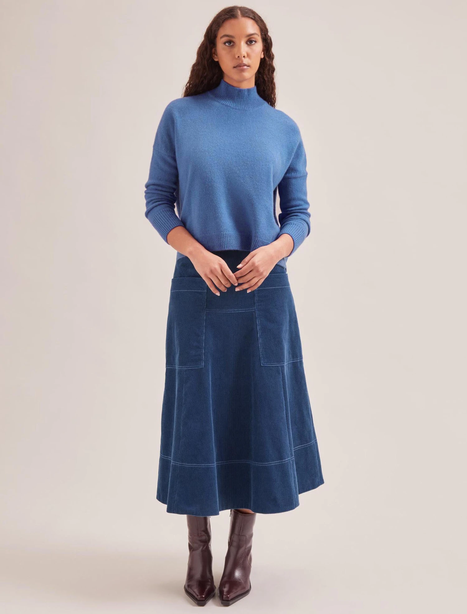 With 90s cargo trousers and skirts continuing to enjoy the fashion spotlight, our Simone maxi skirt offers a luxe twist. Cut from 100% organic cotton corduroy, it has the trend’s signature oversized patch pockets and contrast overstitching. Complement the stitching with one of our beige knits – cue Janice or Janie – and a trainer and that’s your downtime days sorted.