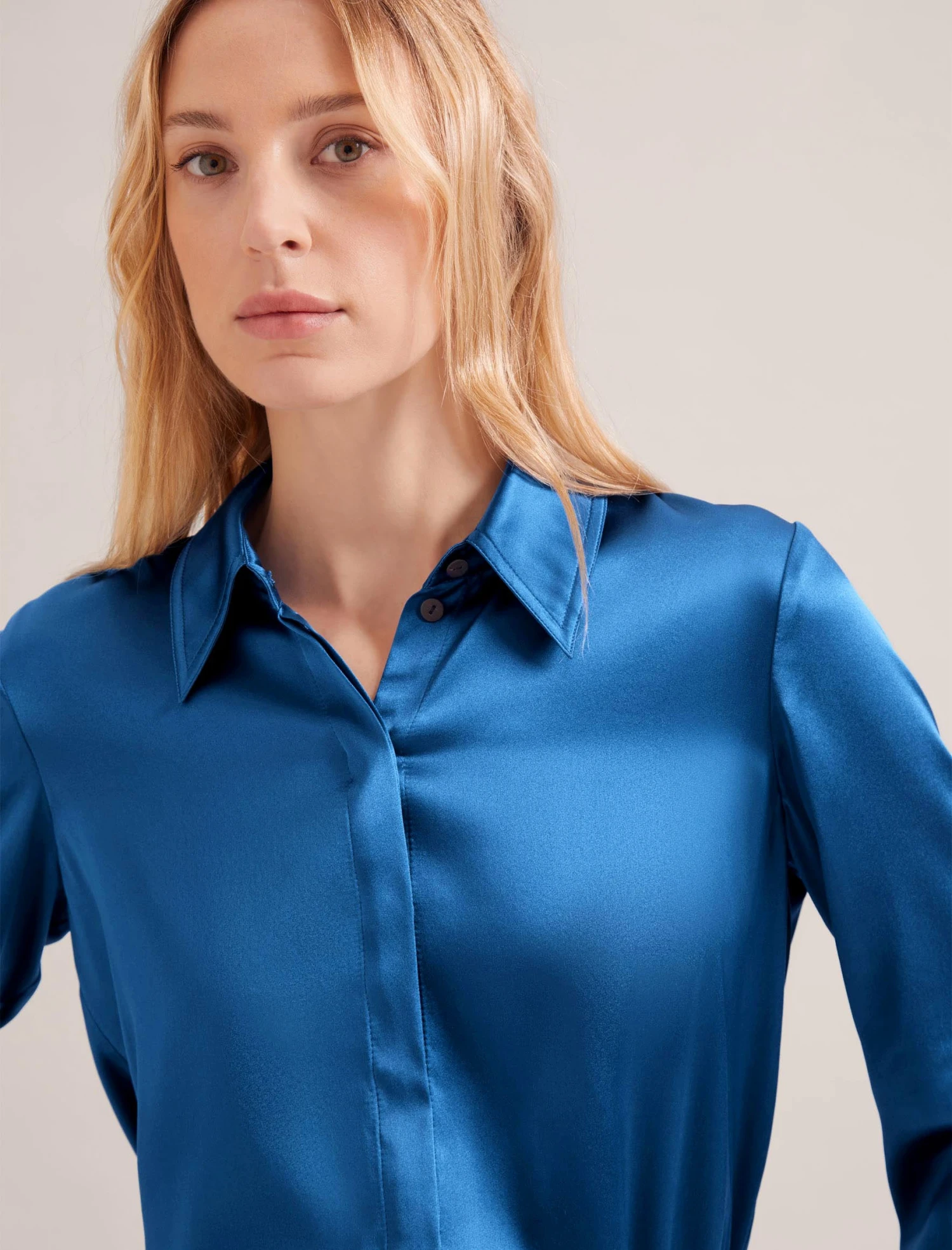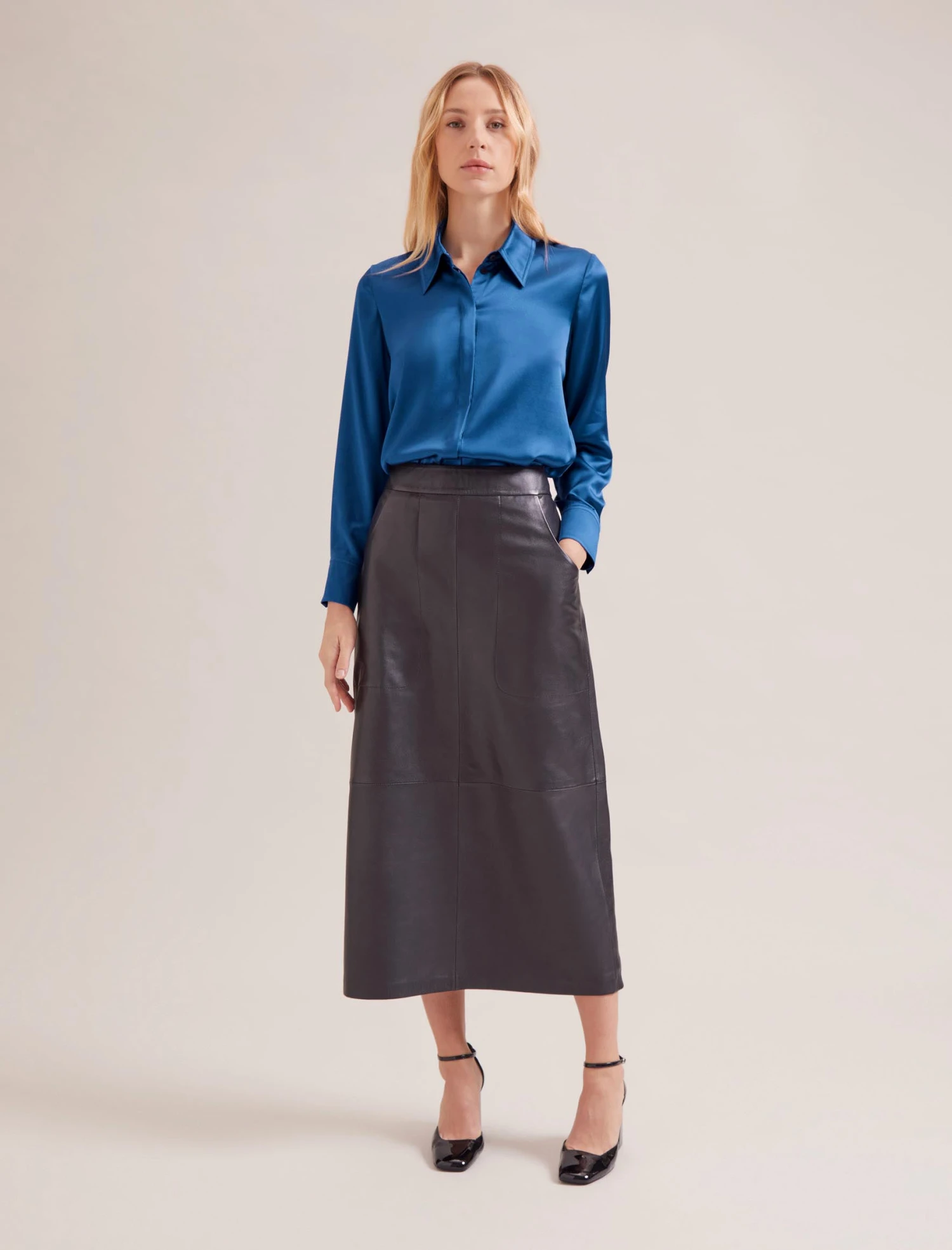 Who doesn’t love the cool elegance of a silk-satin shirt? We’ve revisited Skyla for spring in two sumptuous hues that will instantly brighten up your look (and your mood). A chic spin on a classic style, the overstitching and dartless design elevate it for day-to-night wear. Simply team with a navy or grey tailored trouser or our Arlo leather skirt for a seriously luxe finish.