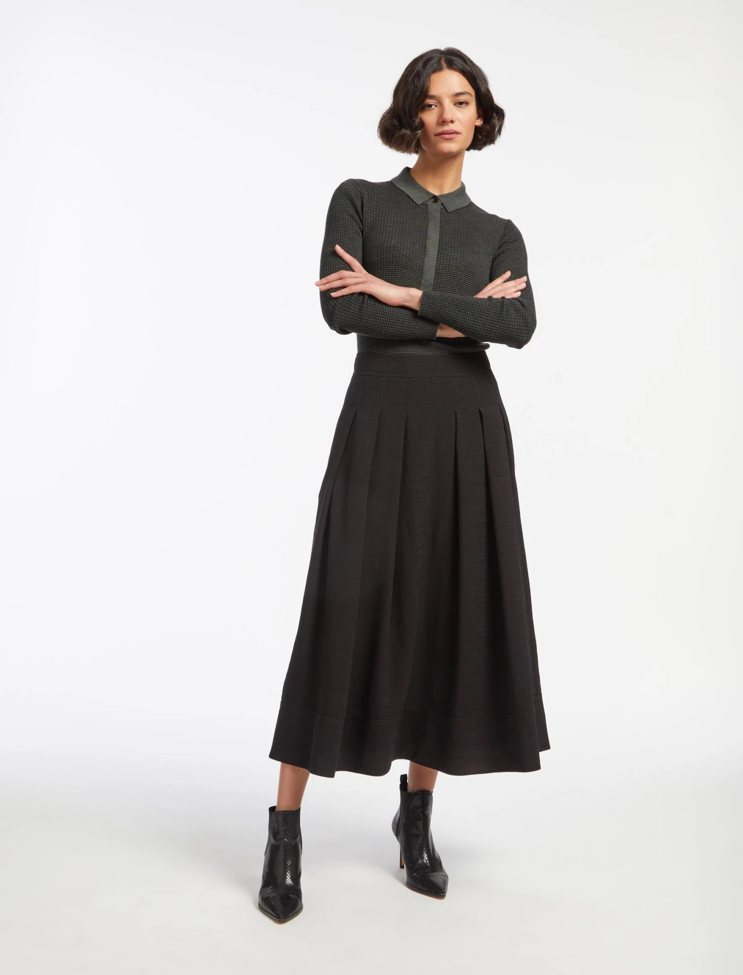 In recent seasons, hemlines have sat in two camps: thigh-skimming or floor-dropping. Our maxi Sophia style is a new staple for the modern wardrobe. Designed in our hero Techni Voile fabric (which will stay crease-free all day), it has box pleats for ease of movement – and to add that all-important swish. Try preppy styling with our Josie fine knit polo, a loafer and socks, or give it a feminine twist with our Stella blouse and a heel. The beauty of Sophia? She’ll work hard for you, whatever you pair with her.
