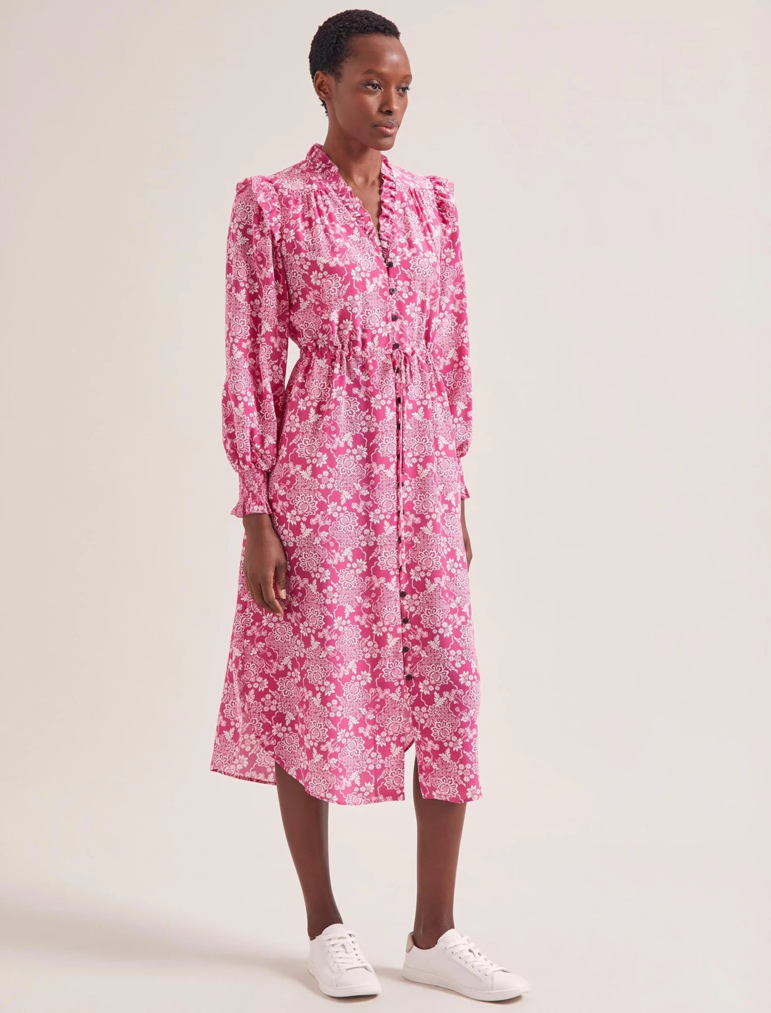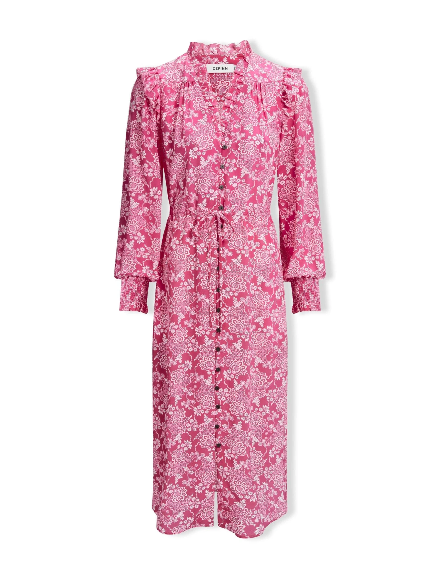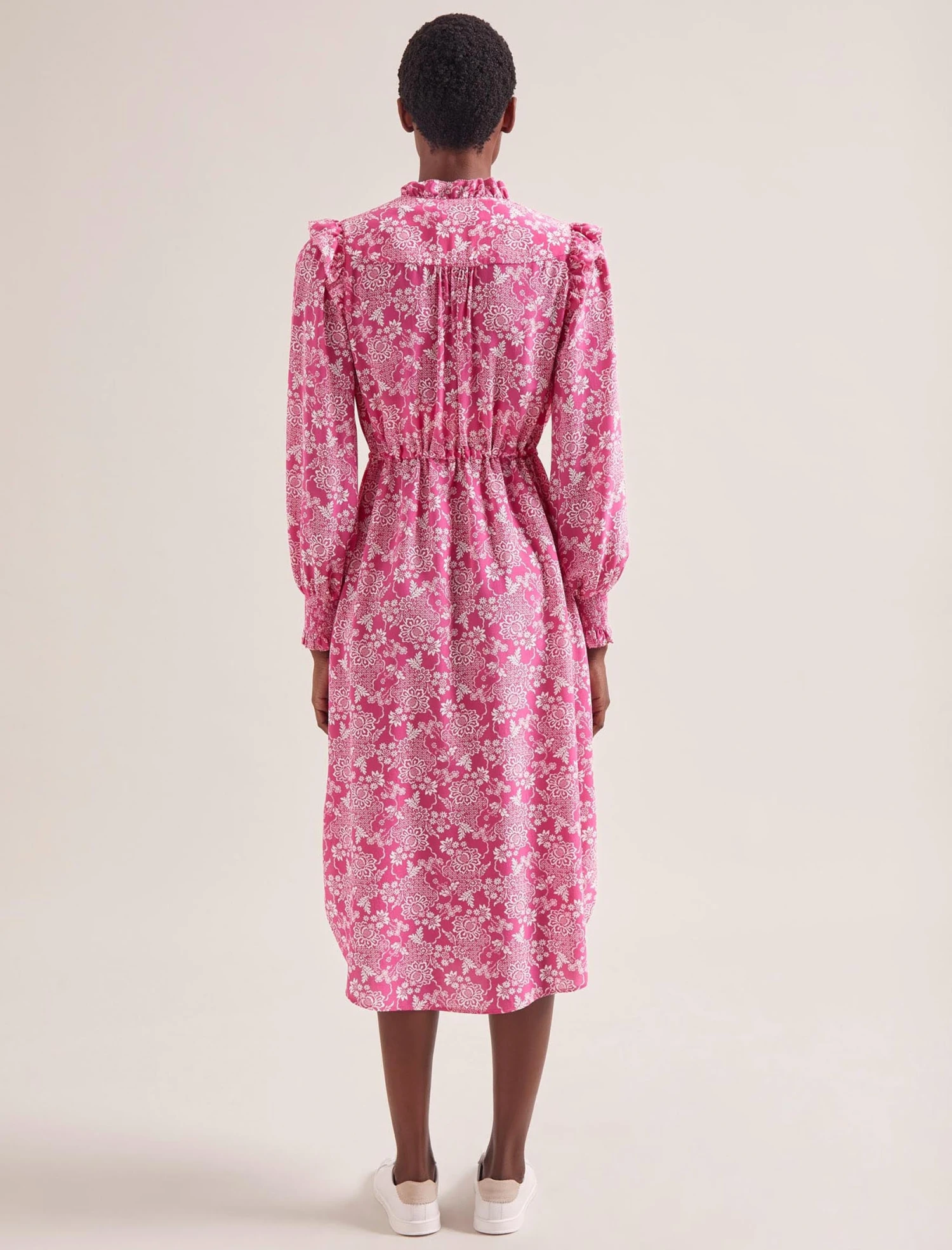 Stella Silk Midi Dress – Hot Pink Damask Print