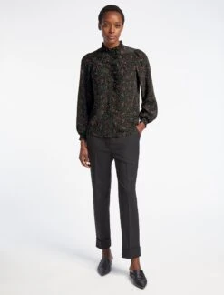 A rework of our bestselling blouse, Stella is made from rose-printed silk that transitions effortlessly from day to evening. The feminine style has a V-neckline with ruffle detailing, delicate rouleaux summarys and gathered detailing along the yoke and shirred cuffs. This versatile top pairs perfectly with a leather skirt, smart trouser and suiting alike.
