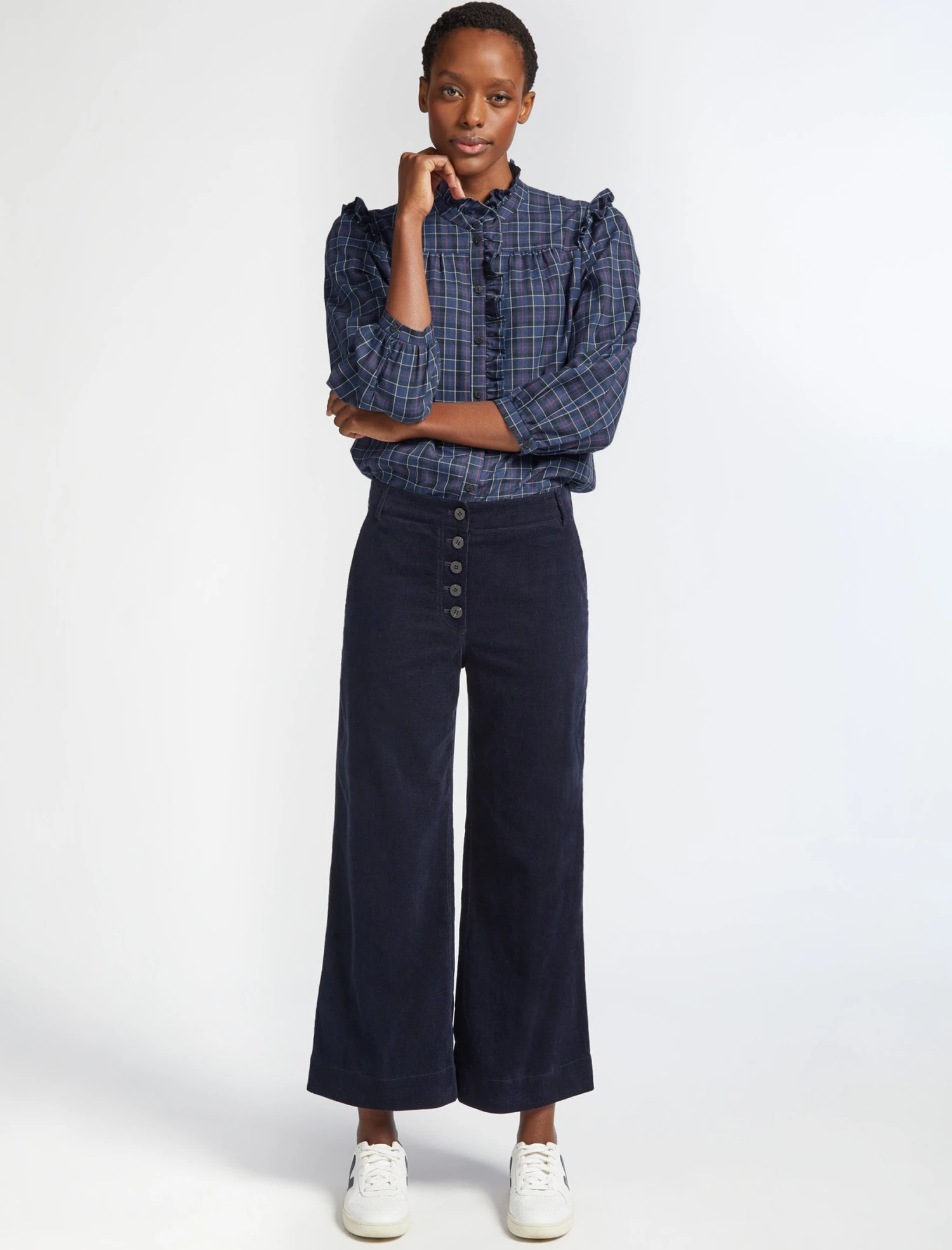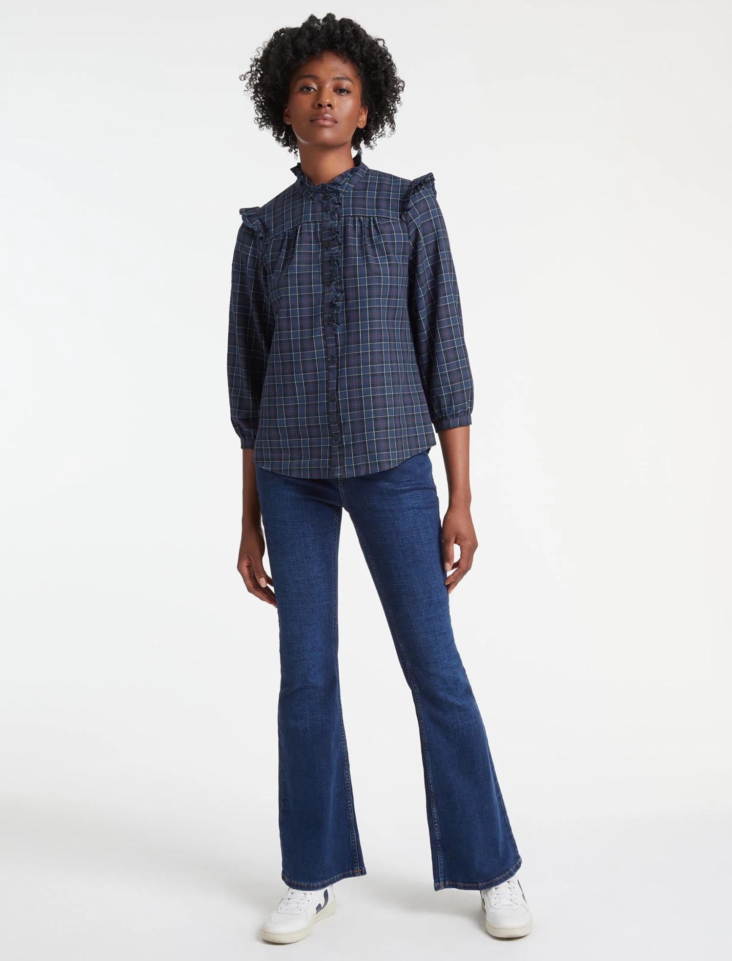 The perfect spring staple, our pie-crust Sybil shirt is the answer to your trans-seasonal dressing conundrums. A blend of femininity by way of the bracelet blouson sleeves, frilled detailing and gathered yoke, with a more mannish brushed cotton checked fabric, it ticks all the style boxes. Ideal for layering under our Caro cardigan or Janie and Janice tops with our Tennyson trouser or jean, it will be a year-round favourite.
