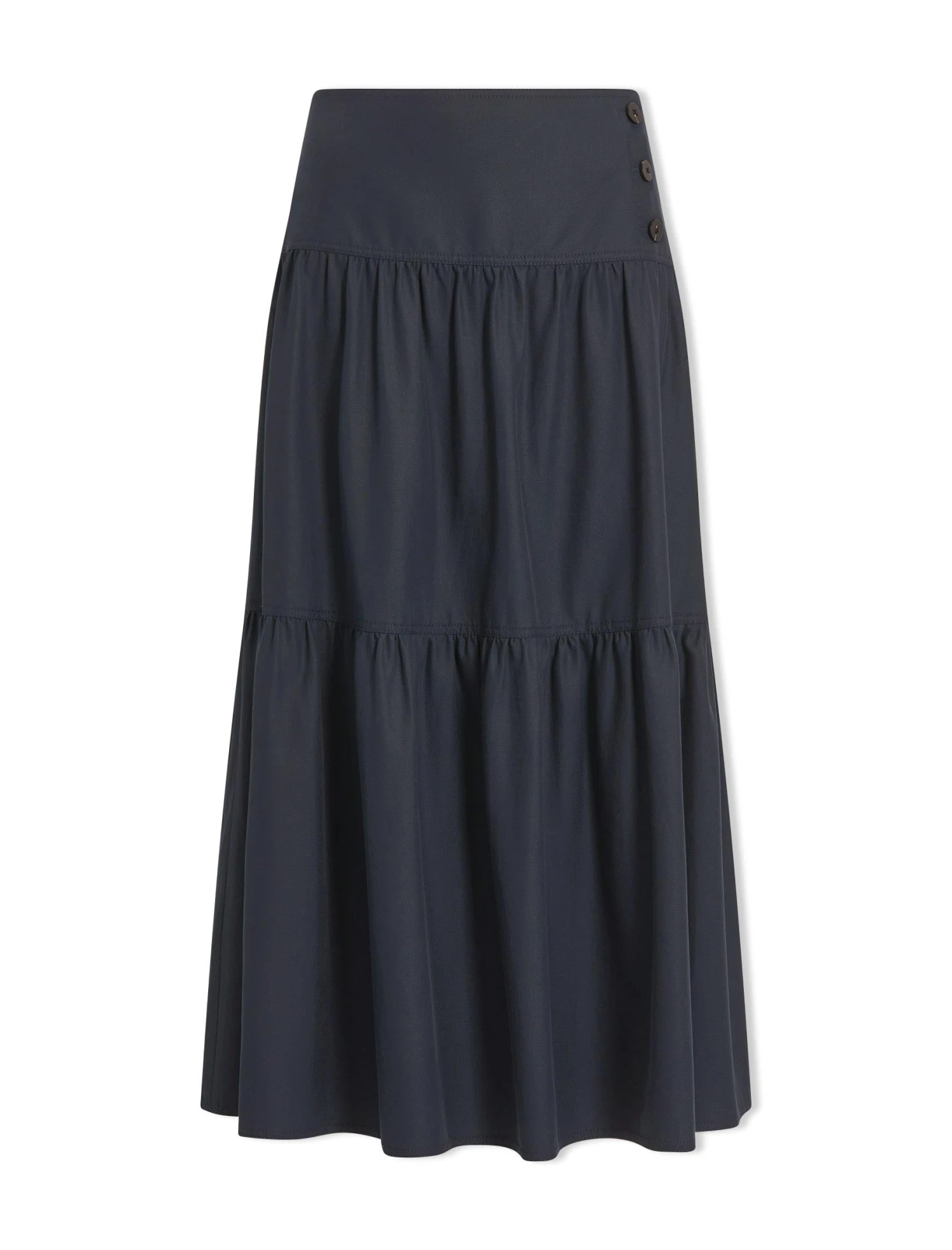 Our tiered Sylvia skirt in a crisp cotton twill is a downtime-dressing staple. Ideal for those weekend days when you want something a little more feminine but with zero flounce, it has side summary detailing and falls to a maxi length. Wear with a sandal and a tee, swapping to a long-sleeved T-shirt and trainer as the leaves begin to fall.