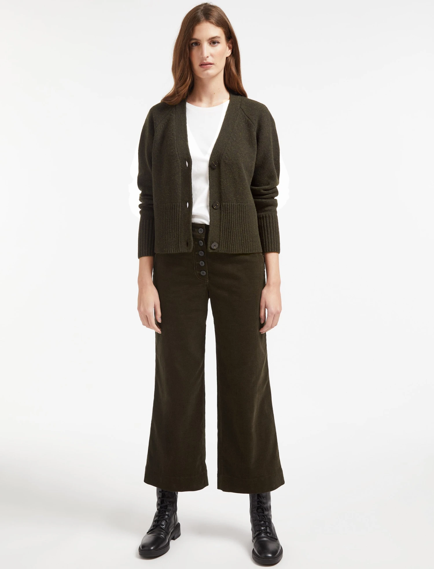 - High waisted, cropped kick flare trouser in stretch pin corduroy