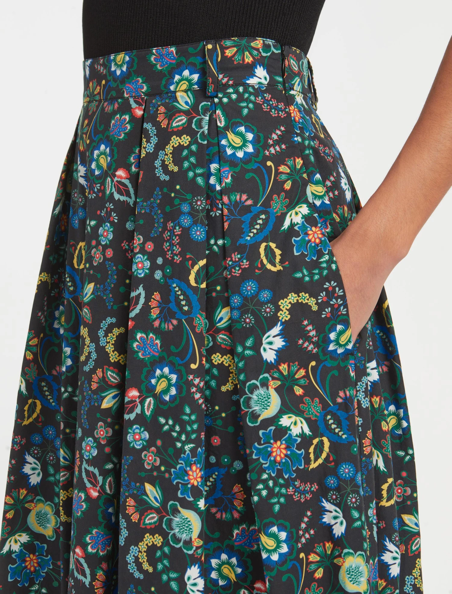 When the day calls for something a little smarter, Thandie is the dream dress-up or dress-down skirt thanks to its large floral print. Designed in crisp organic-cotton poplin with box pleats and an elasticated back waist, it works just as well with a simple T-shirt and a trainer as it does with a heeled sandal and our black Tammy vest.