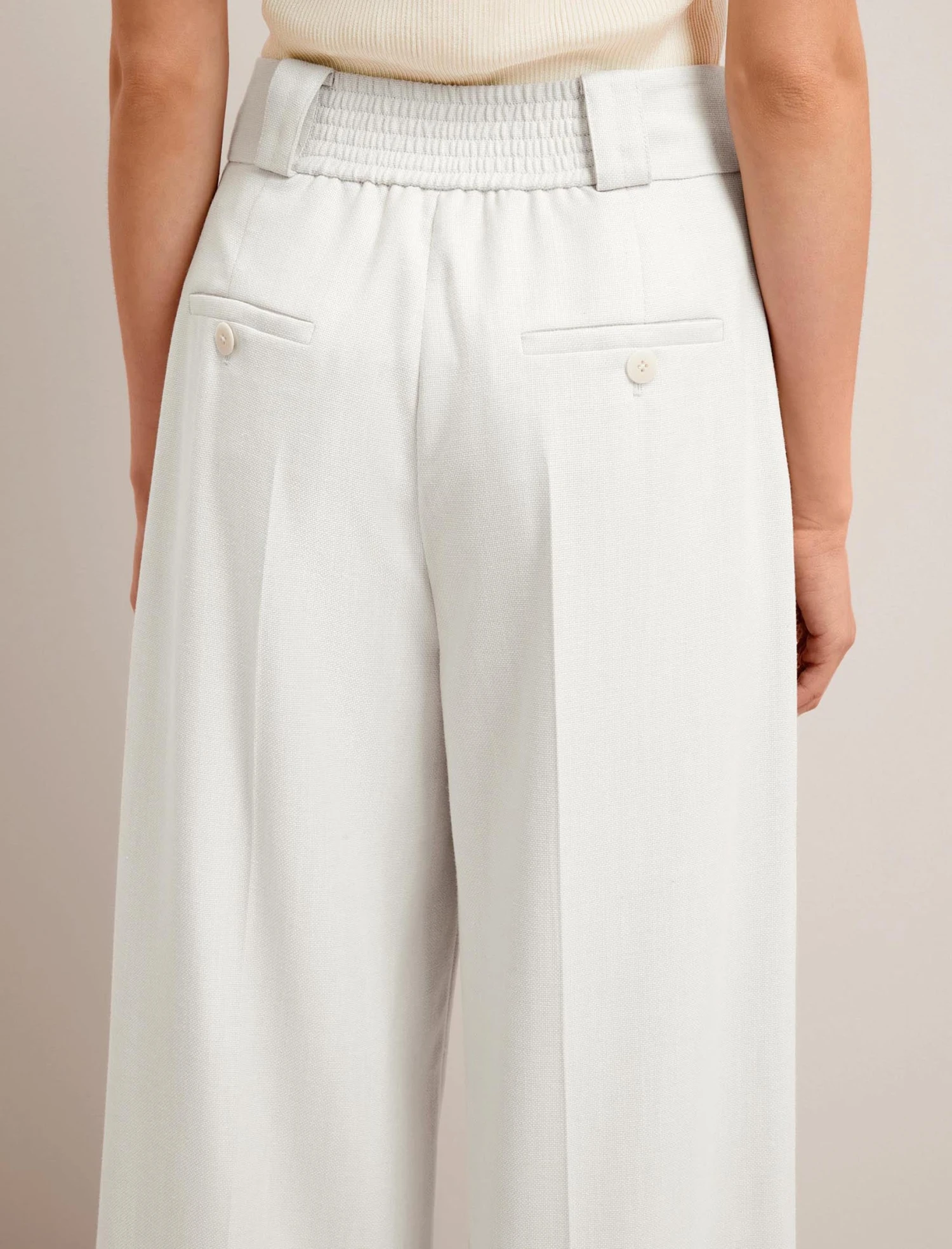 Cool, elegant and leg-lengthening, our super wide-leg Tyler trouser delivers a so-now silhouette. Tailored in a naturally slubby linen blend that is crease resistant and holds its shape, it has an elasticated back waist for easy wearability. Pair with the Jamie blazer for smarter office days and summer events, or wear with a white tee and trainer for effortless cool.
