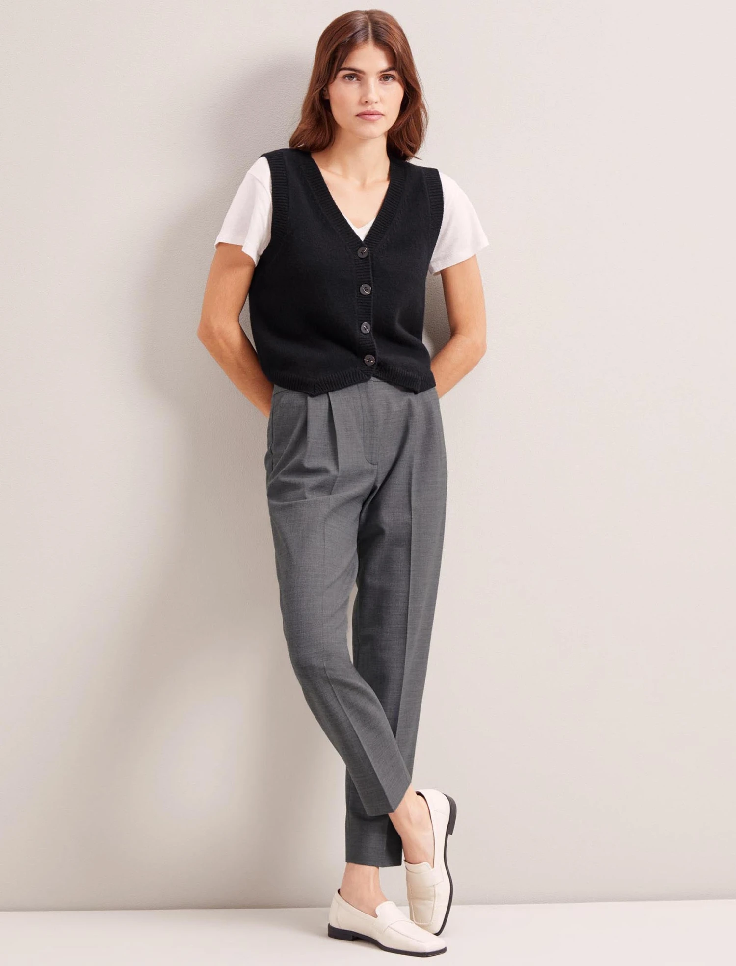 Our cashmere-and-wool blend Wesley waistcoat is an on-trend layering piece with year-round versatility. Wear alone with a wide-legged trouser or baggy jean for a laid-back, edgier vibe. Alternatively, layer it over a shirt or dress, or under a blazer when the office air con is too chilly.