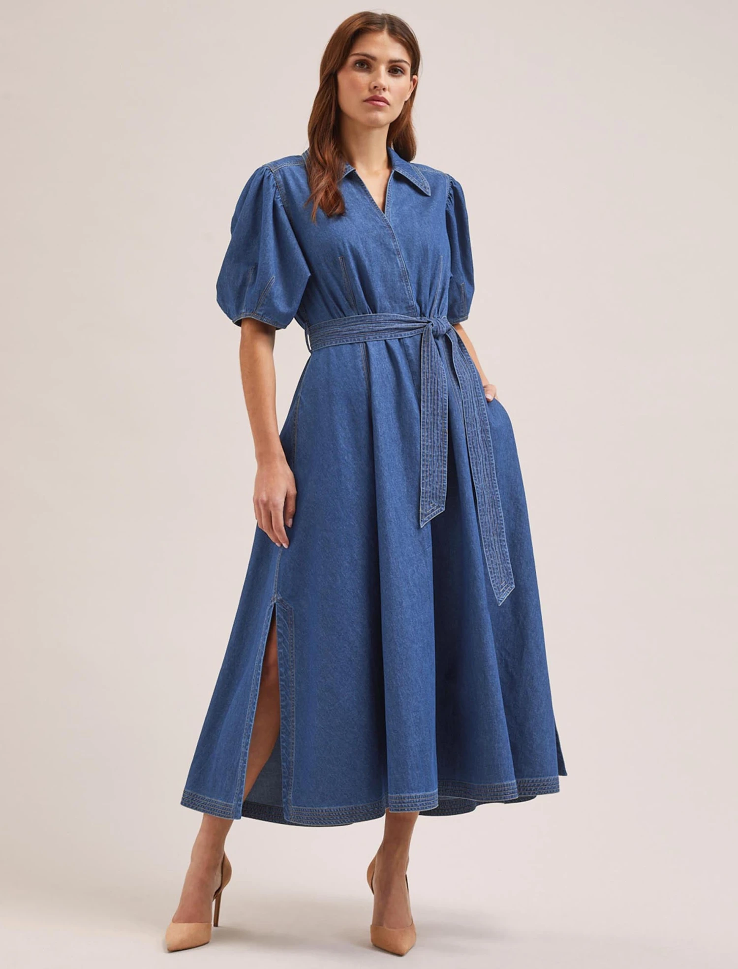 Off-duty yet elevated, the Wren is the day dress you will reach for time and again. The fixed faux wrap, full skirt and on-trend voluminous sleeve, create a super-flattering silhouette. Easy to wear thanks to the elasticated back waist and side slits, the dress and removeable belt feature beautiful top stitching pointing to our signature attention to detail. Simply throw on with box-fresh trainers or dress her up with wedges or a heel for garden parties, summer celebrations and Wimbledon!