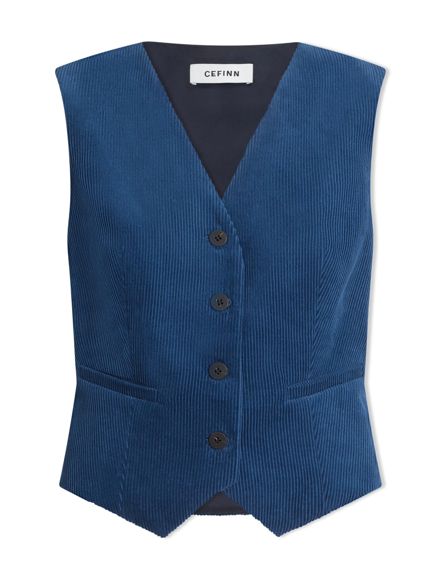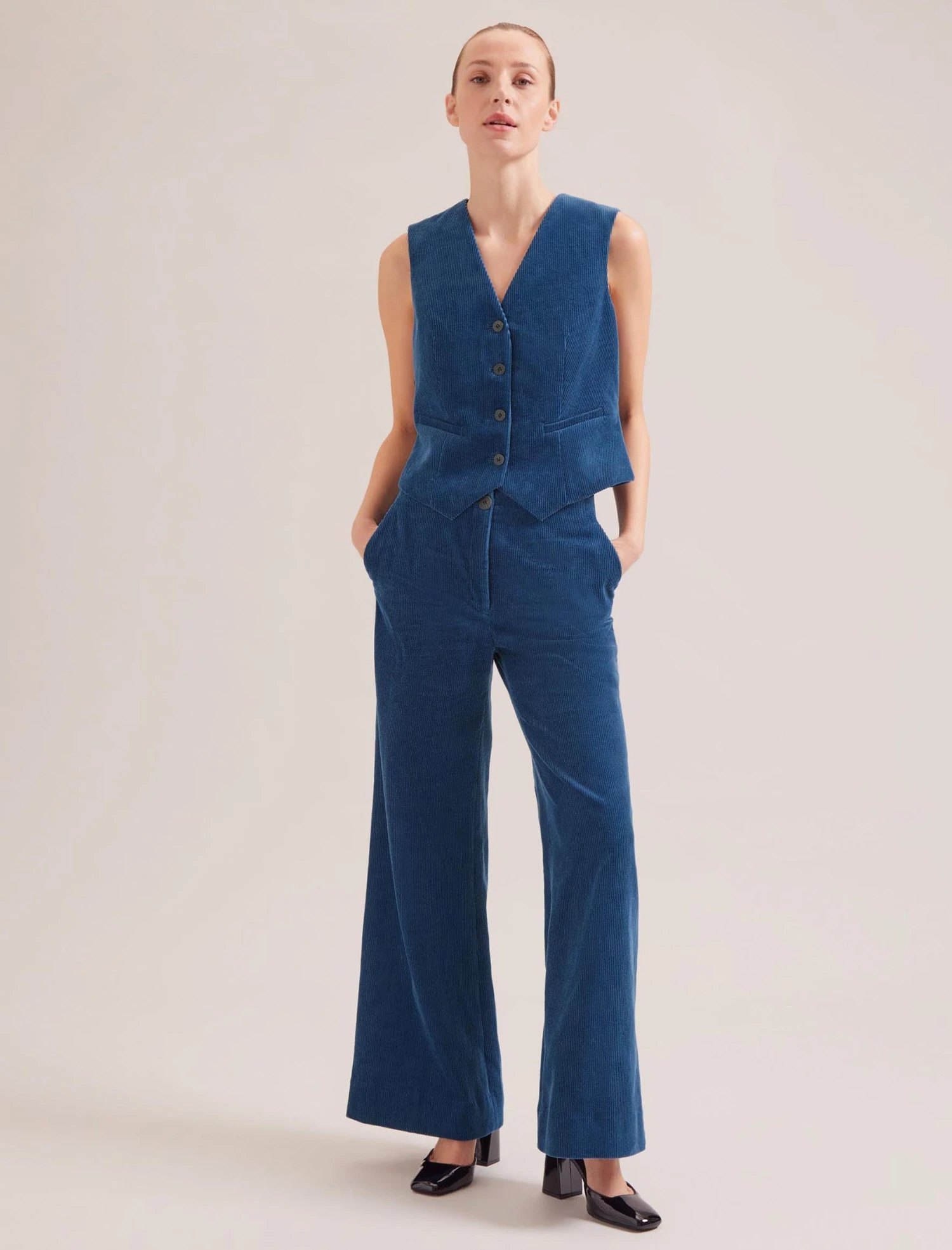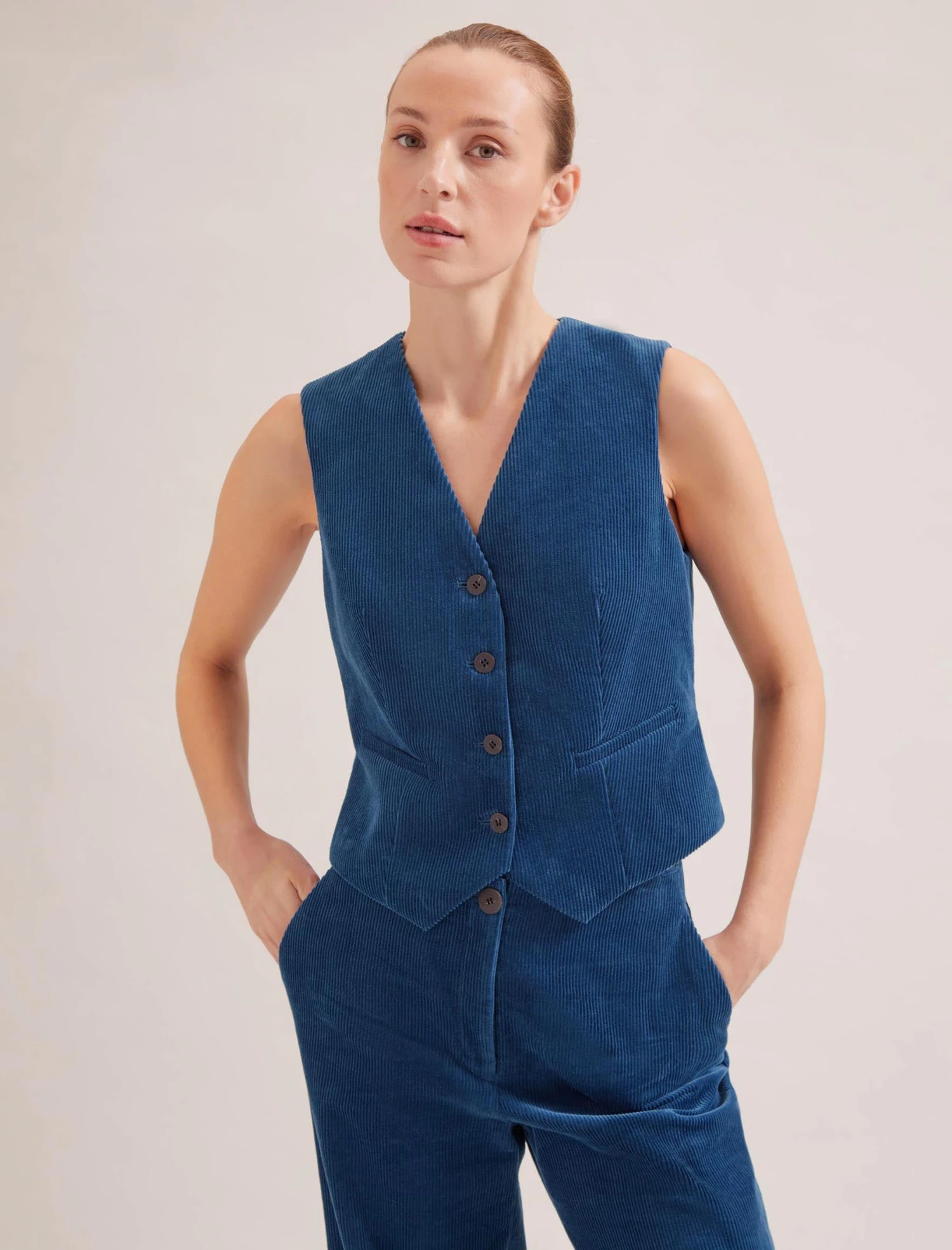 Our Wyatt waistcoat is cut from 100% organic corduroy, which has the look of luxe velvet and the feel of soft cotton. The figure-flattering shape and snug armholes mean you can wear it alone with our matching Harlow trouser and a trainer or over a long-sleeved T-shirt, jean and heel.